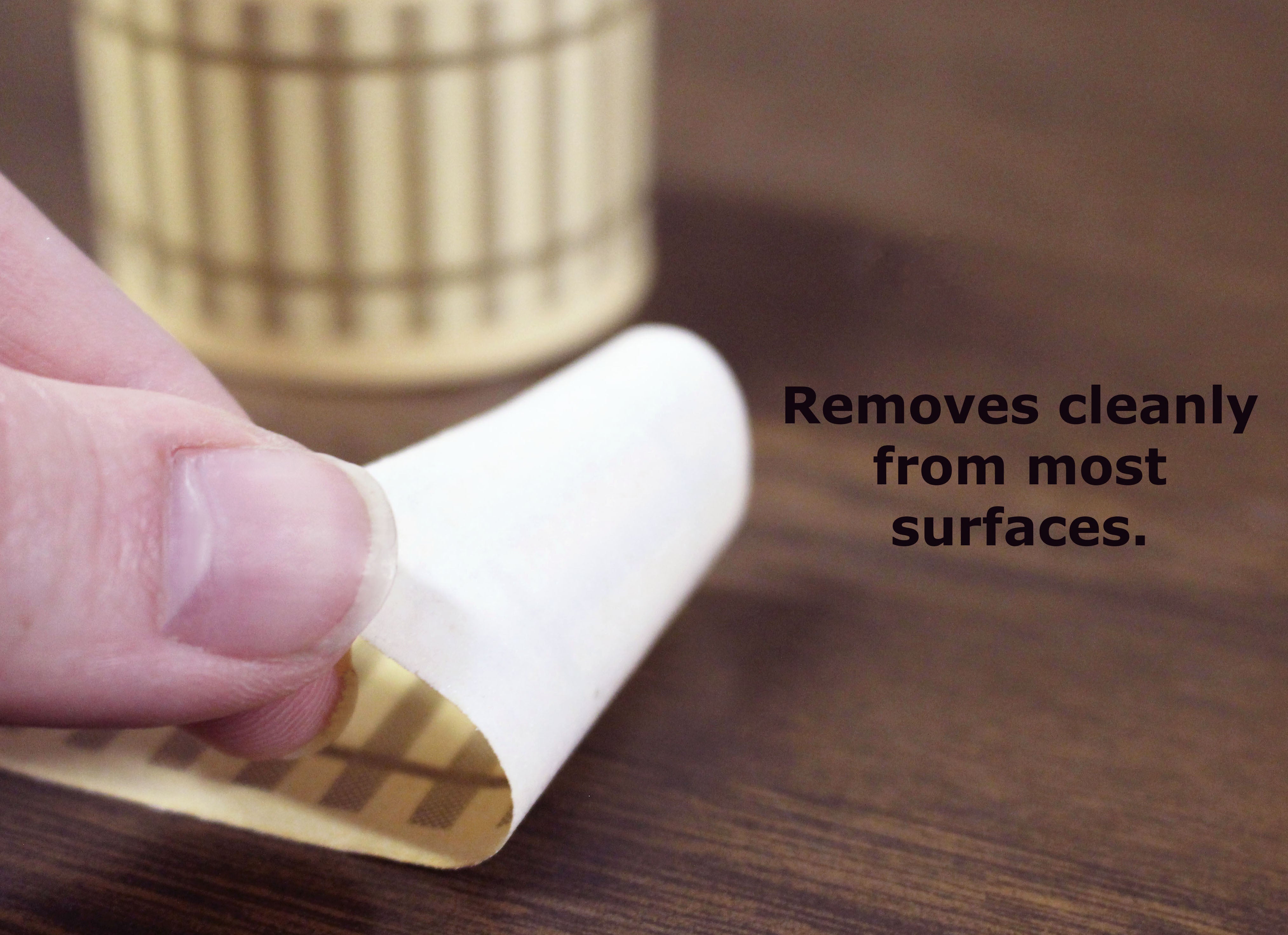 The hand-tearable material and compact size of the roll make it easy for kids to use and the removable adhesive ensures that it comes up without leaving any residue or ruining the surface beneath.