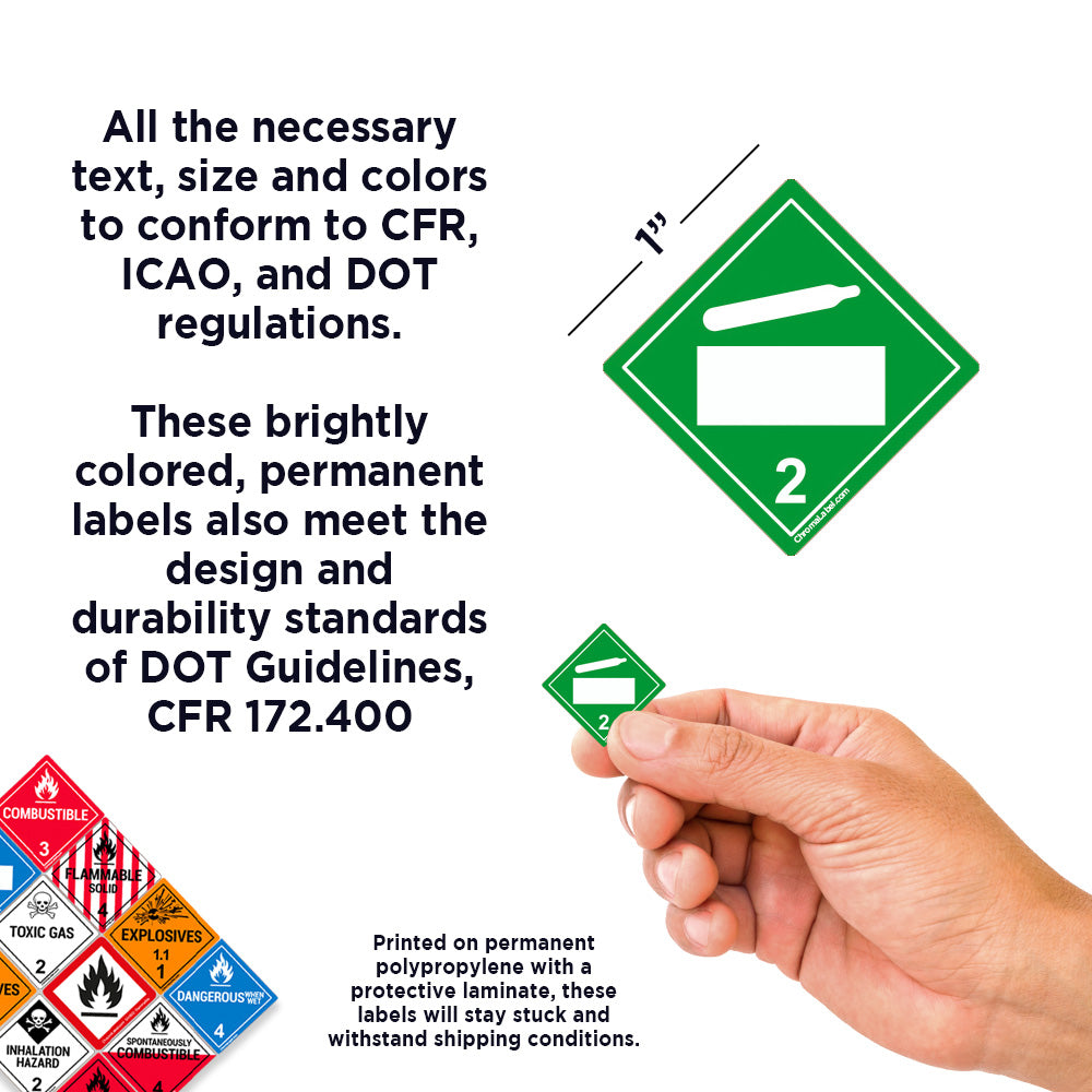 With all necessary text, size, and colors to conform to CFR, ICAO and DOT regulations, these brightly colored, permanent labels also meet the design and durability standards of DOT Guidelines, CFR 172.400
