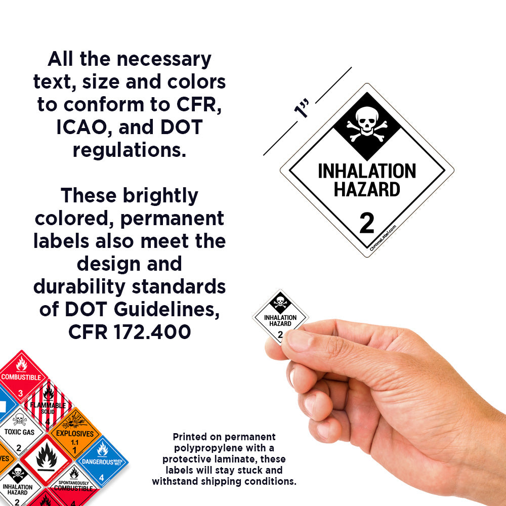 1" x 1" Permanent Durable D.O.T. Hazard Labels: Class 2 Inhalation Hazard, 250/Roll