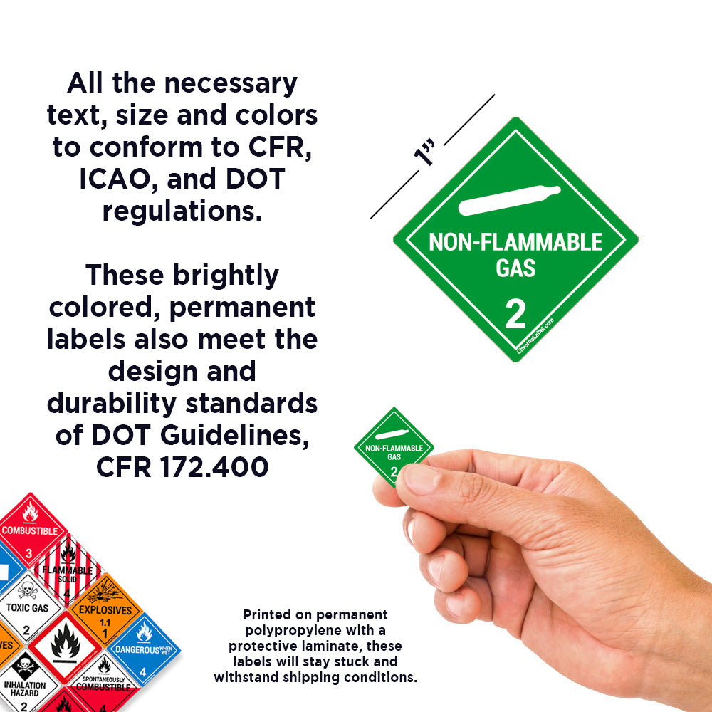1" x 1" Permanent Durable D.O.T. Hazard Labels: Class 2 Non-Flammable Gas, 250/Roll