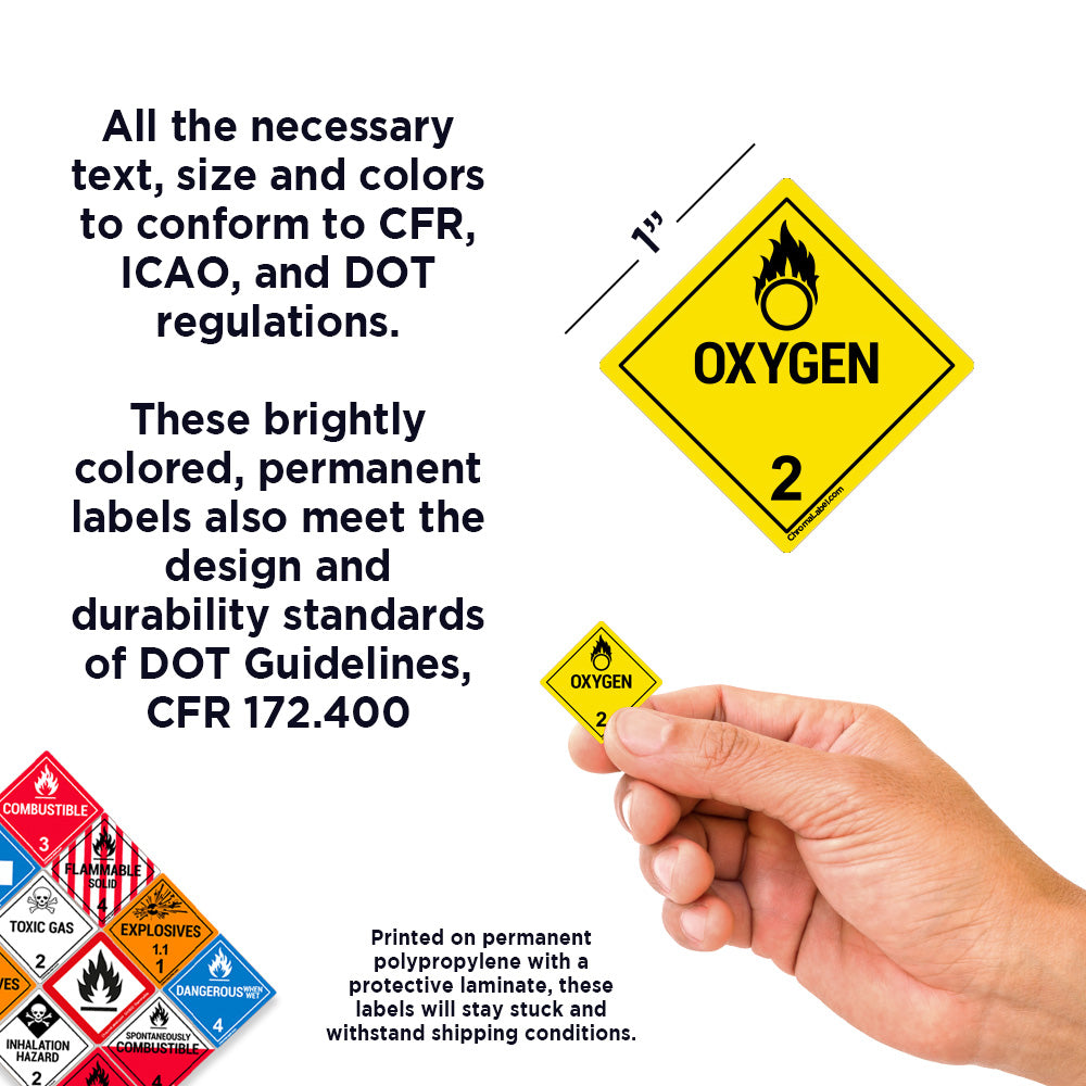 With all necessary text, size, and colors to conform to CFR, ICAO and DOT regulations, these brightly colored, permanent labels also meet the design and durability standards of DOT Guidelines, CFR 172.400