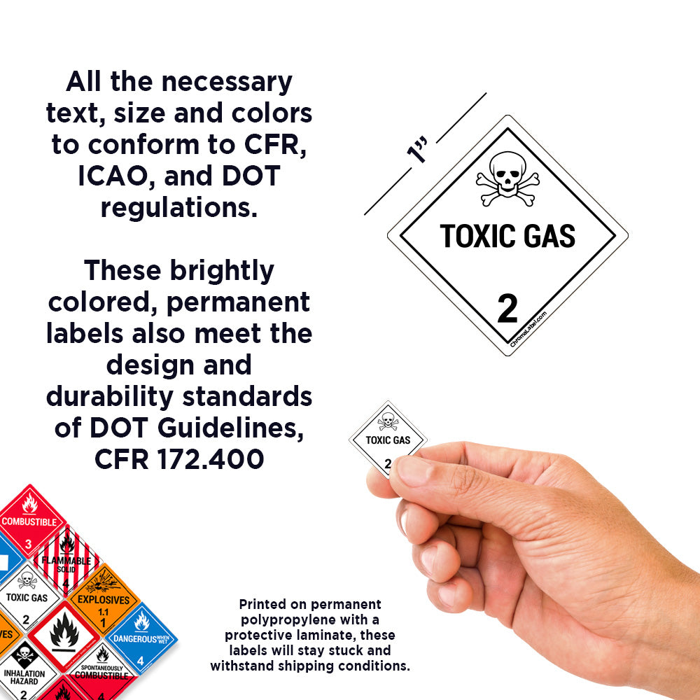 1" x 1" Permanent Durable D.O.T. Hazard Labels: Class 2 Toxic Gas, 250/Roll