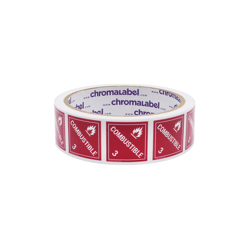 1" x 1" Permanent Durable D.O.T. Hazard Labels: Class 3 Combustible, 250/Roll