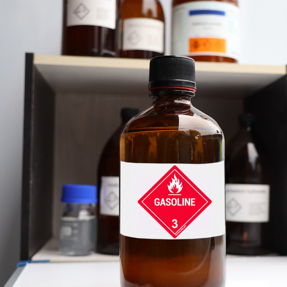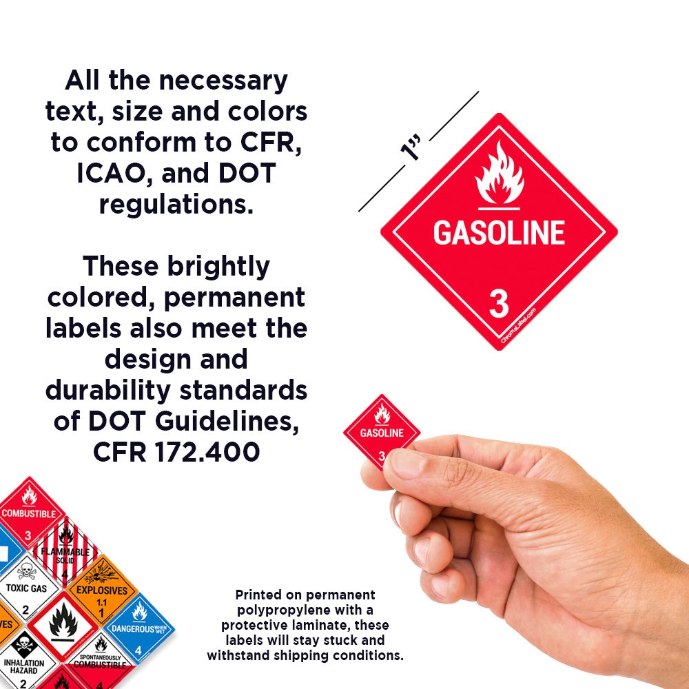 1" x 1" Permanent Durable D.O.T. Hazard Labels: Class 3 Gasoline, 250/Roll