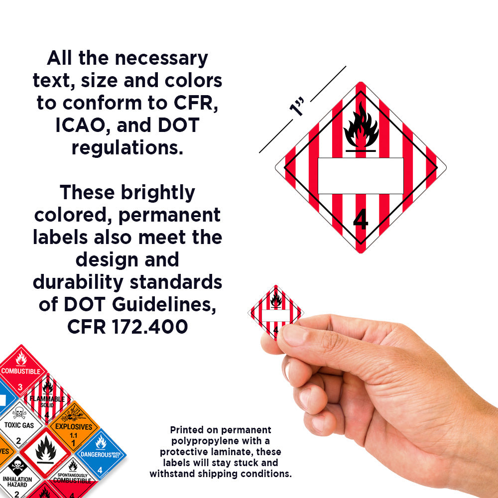 1" x 1" Permanent Durable D.O.T. Hazard Labels: Class 4 Blank Flammable Solid, 250/Roll