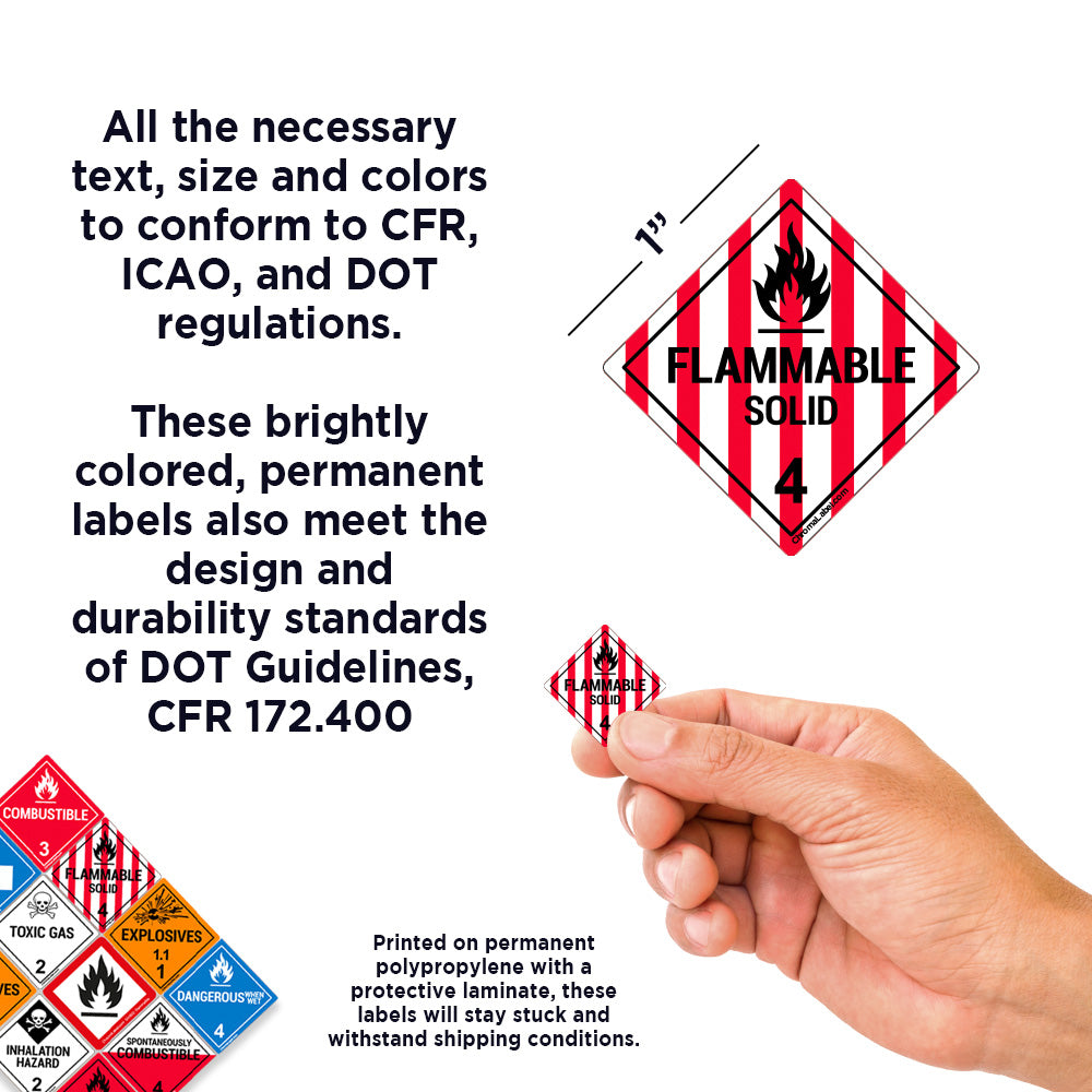 1" x 1" Permanent Durable D.O.T. Hazard Labels: Class 4 Flammable Solid, 250/Roll