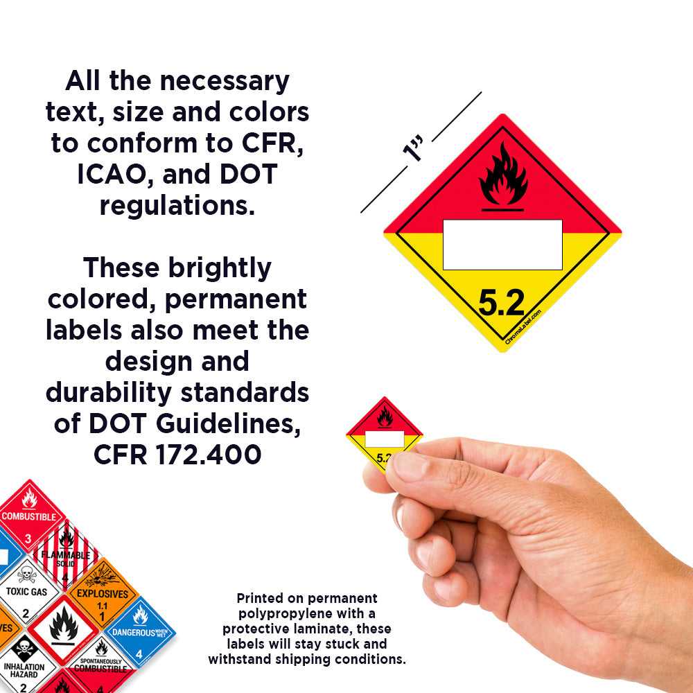 1" x 1" Permanent Durable D.O.T. Hazard Labels: Class 5.2 Blank Revised, 250/Roll