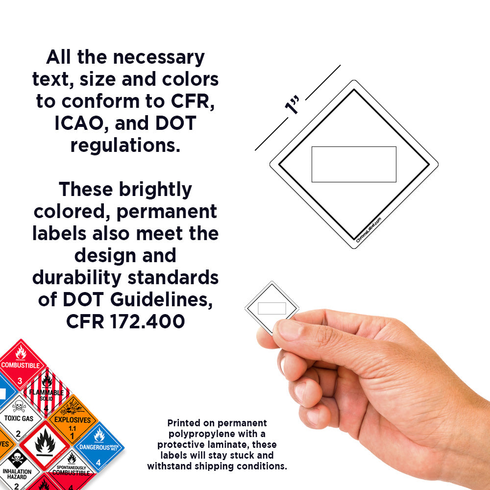 1" x 1" Permanent Durable D.O.T. Hazard Labels: Blank Hazard Pictogram, 250/Roll