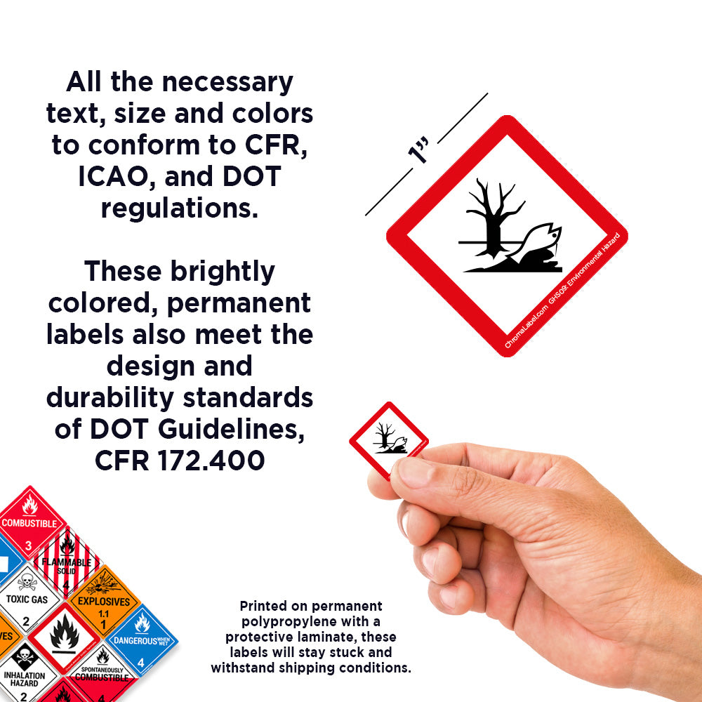 Our Hazmat labels are available for Hazard Classes 1 through 9, as well as blank, wordless, and international variations. Our GHS Labels conform to the UN's Globally Harmonized System for labeling and transporting chemicals.