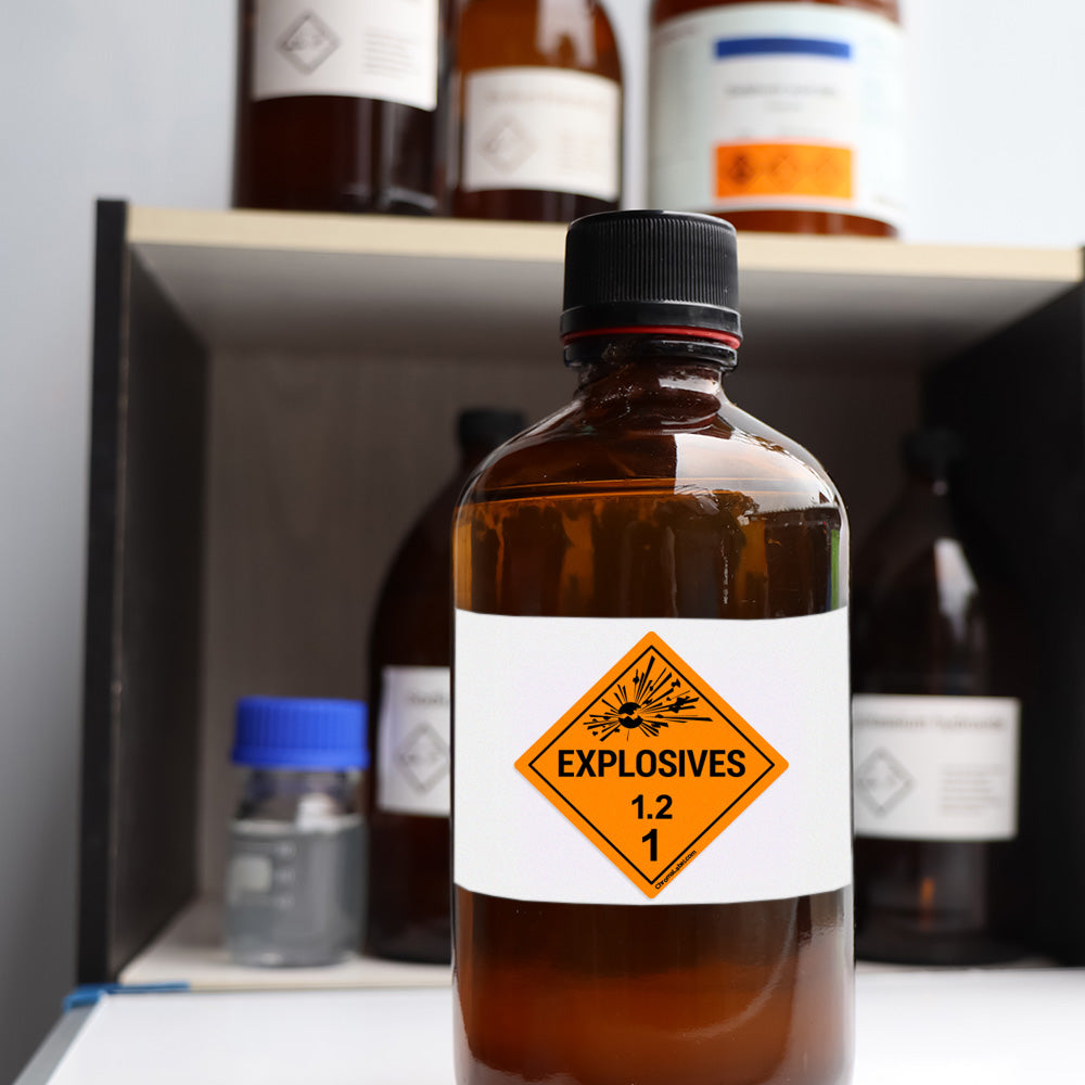 1" x 1" Permanent Durable D.O.T. Hazard Labels: Hazard Class 1.2 Explosives, 250/Roll