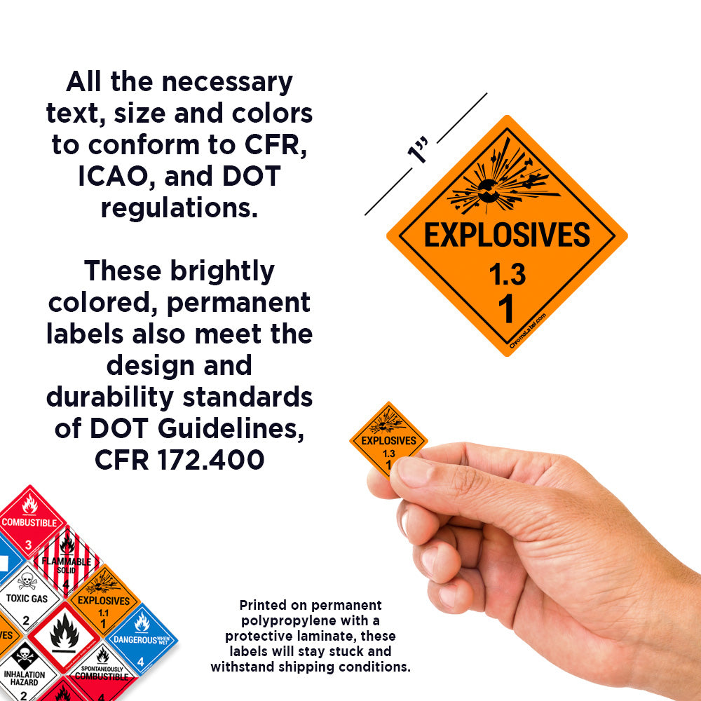 1" x 1" Permanent Durable D.O.T. Hazard Labels: Class 1.3 Explosives Label, 250/Roll