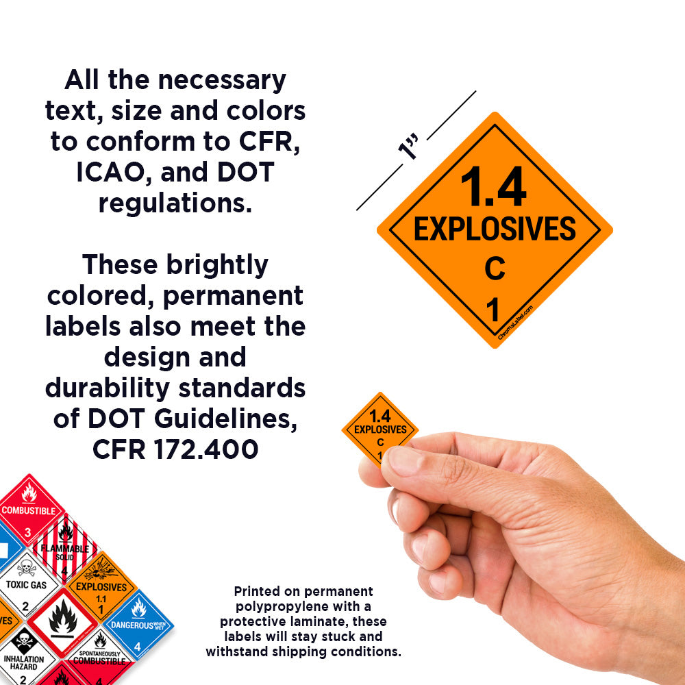 1" x 1" Permanent Durable D.O.T. Hazard Labels: Class 1.4C Explosives, 250/Roll