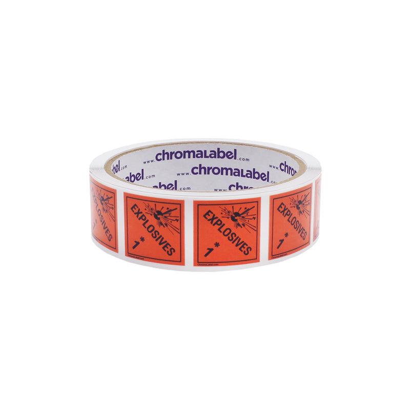2" x 2" Permanent Durable Square D.O.T. Hazard Labels, Hazard Class 1 Explosives Label, 100/Roll
