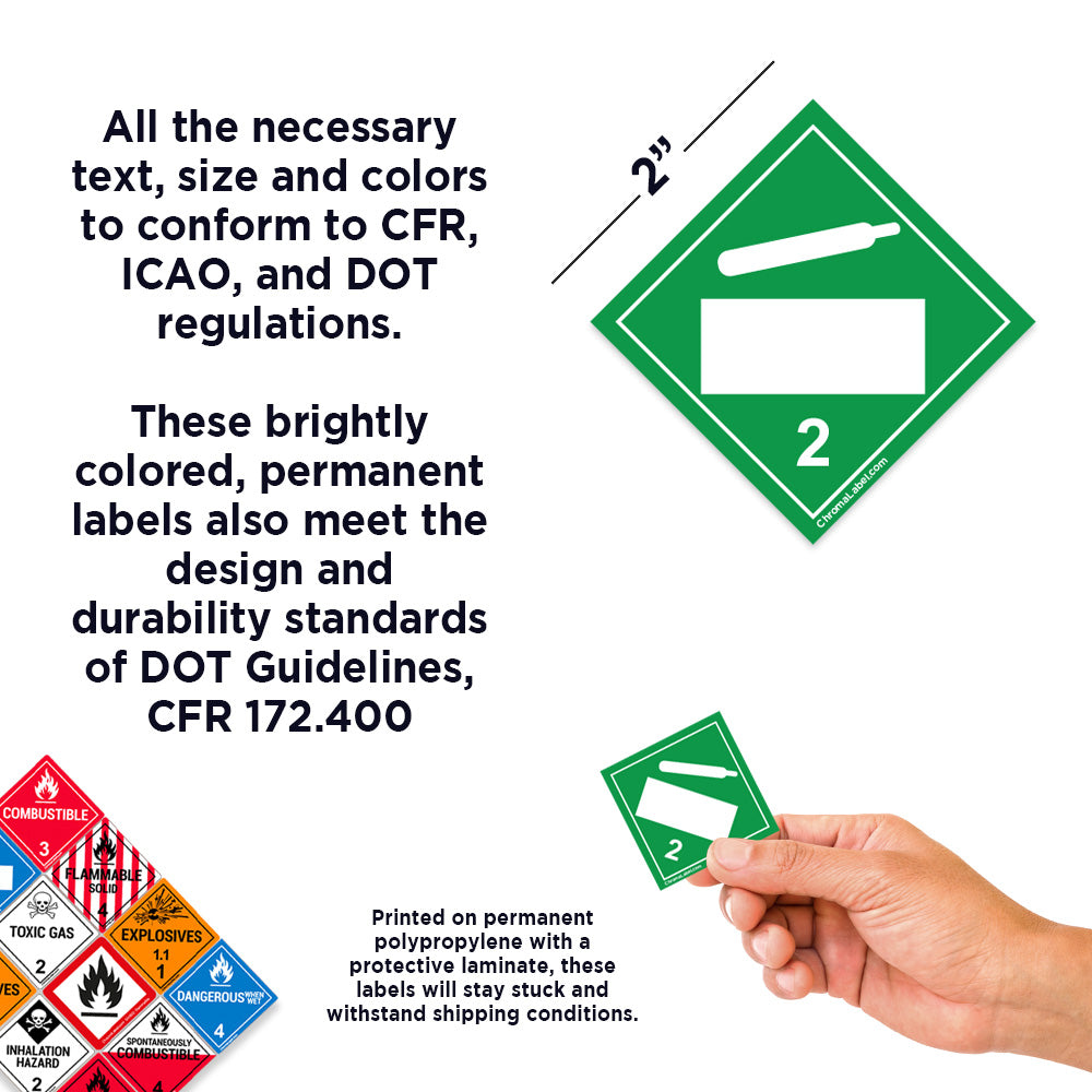 2" x 2" Permanent Durable Square D.O.T. Hazard Labels, Hazard Class 2 Blank Non-Flammable Gas Label, 100/Roll