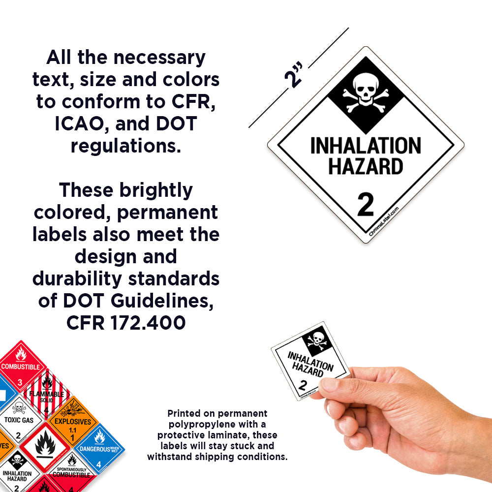 2" x 2" Permanent Durable Square D.O.T. Hazard Labels, Hazard Class 2 Inhalation Hazard Label, 100/Roll