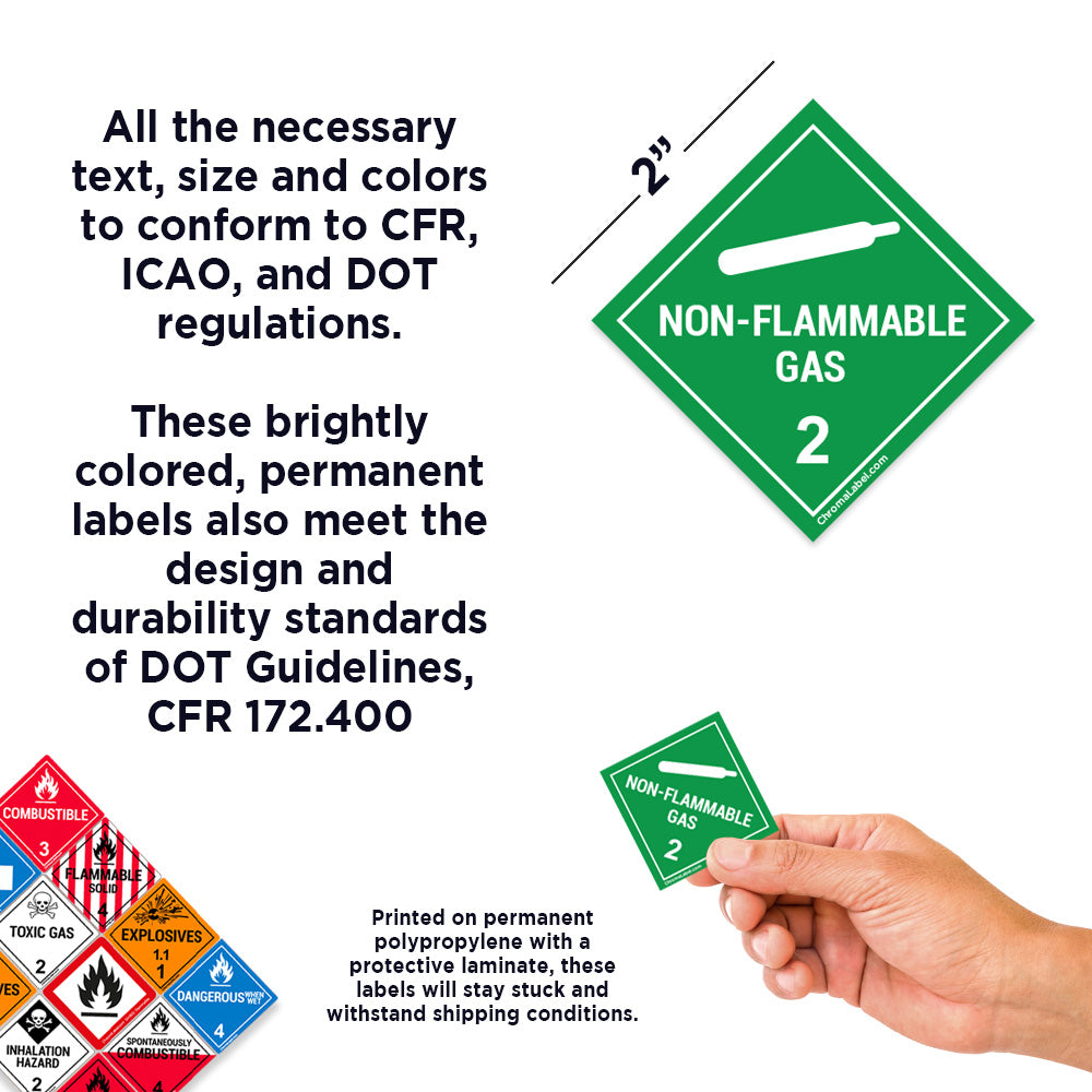 2" x 2" Permanent Durable Square D.O.T. Hazard Labels, Hazard Class 2 Non-Flammable Gas Label, 100/Roll