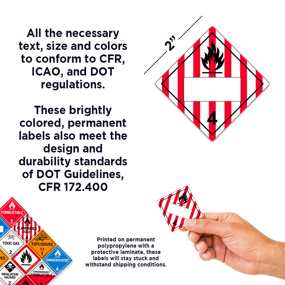 2" x 2" Permanent Durable Square D.O.T. Hazard Labels, Hazard Class 4 Blank Flammable Solid Label, 100/Roll