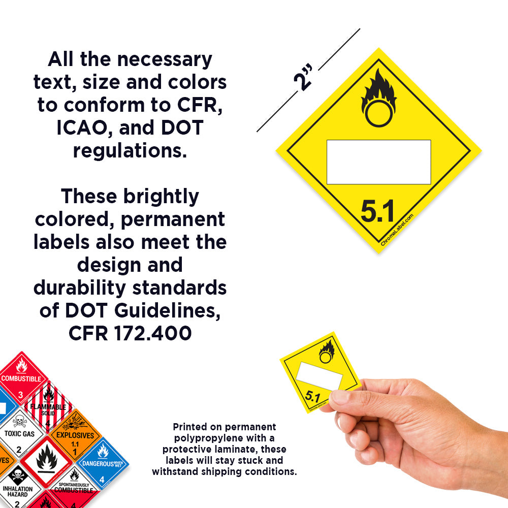 2" x 2" Permanent Durable Square D.O.T. Hazard Labels, Hazard Class 5.1 Oxidizer Label, 100/Roll