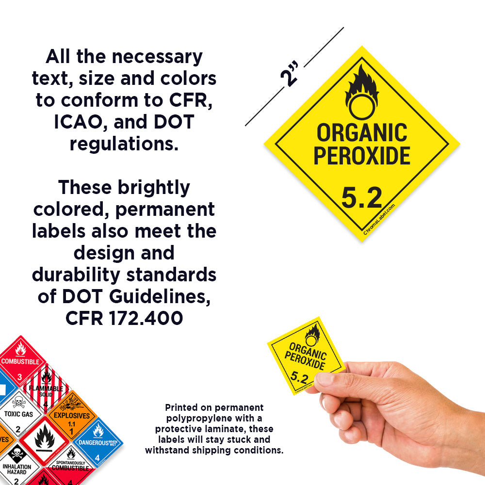 2" x 2" Permanent Durable Square D.O.T. Hazard Labels, Hazard Class 5.2 Organic Peroxide Label, 100/Roll