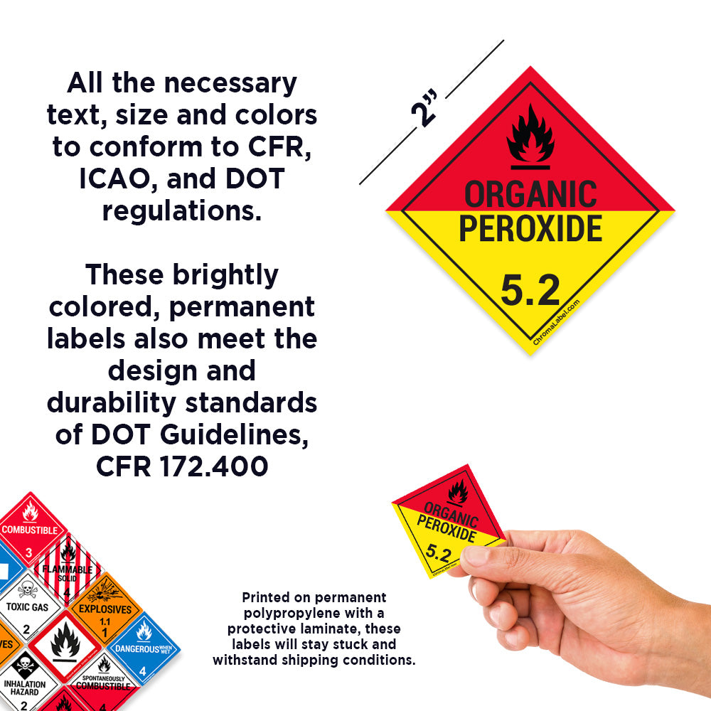 2" x 2" Permanent Durable Square D.O.T. Hazard Labels, Hazard Class 5.2 Organic Peroxide Revised Label, 100/Roll