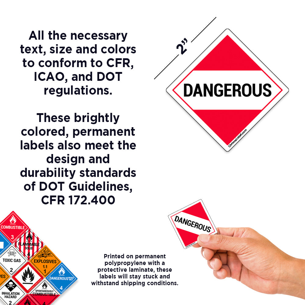 2" x 2" Permanent Durable Square D.O.T. Hazard Labels, Dangerous Hazard Pictogram Label, 100/Roll