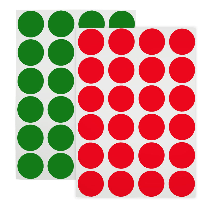 More details on 3/4" Removable Red and Green Sheeted Dot Kit, 1200 Pack, 50 Sheets/Pack, 25 of Each Color