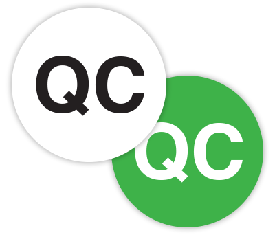 3/4" Permanent Round, Color-Code Imprinted "QC" Quality Control Labels: 500/PACK