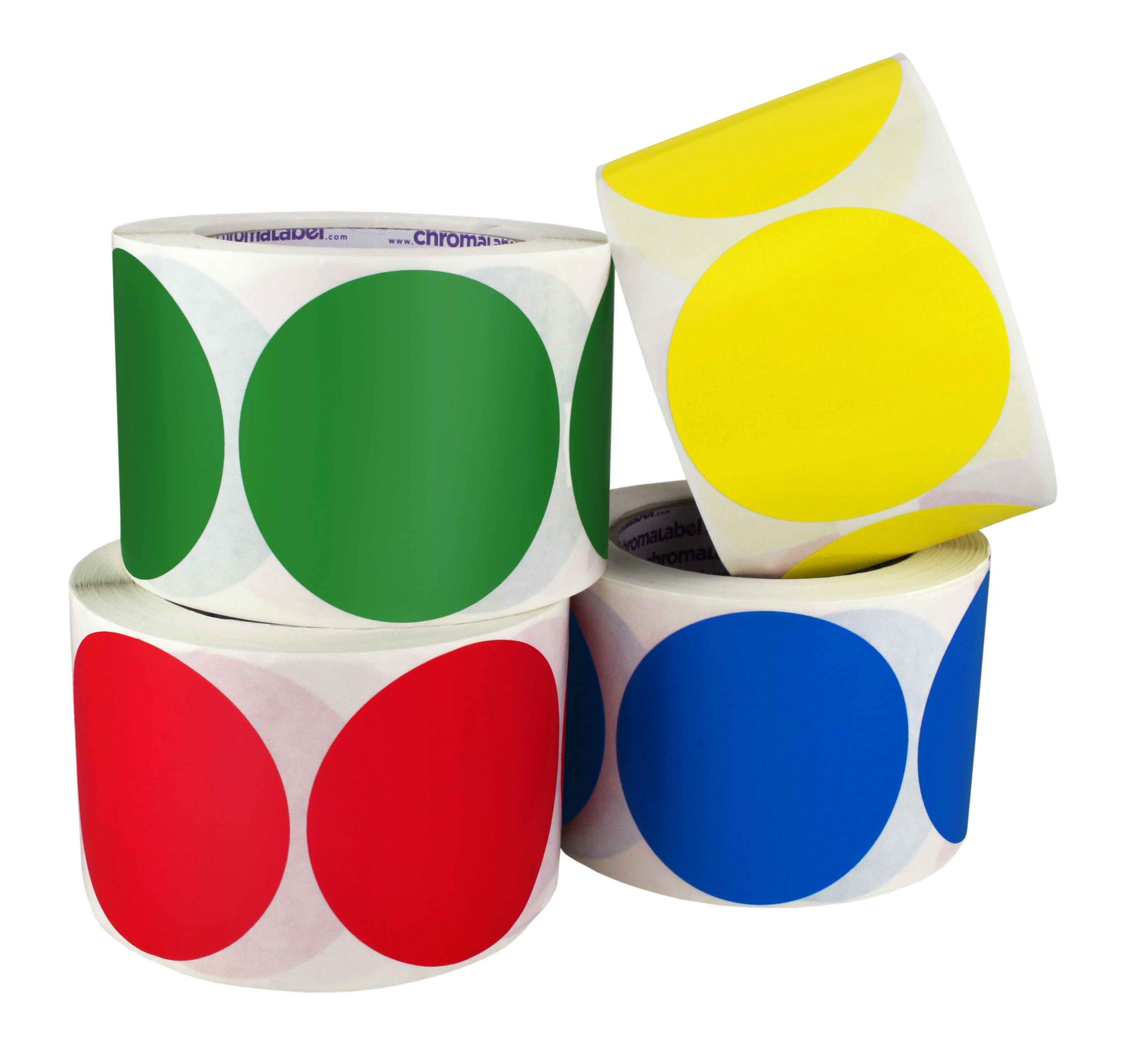 ChromaLabel is proud to offer colored 3" sticker labels on a shrinkwrapped roll to make organization simple. These colored adhesive 76 mm dots are easy to write on with a felt-tipped marker, are backed with pressure-sensitive permanent adhesive, and have a beautiful semi-gloss finish. Our color-coding dot 3" stickers come in a variety of colors. From retail stores to public libraries to medical laboratories, these color-coding dot sticker rolls have many different uses, making them beneficial in a host of different industries. They’re sure to help you become more organized in a colorful, fun way—fall in love with our color-coding roll labels today!