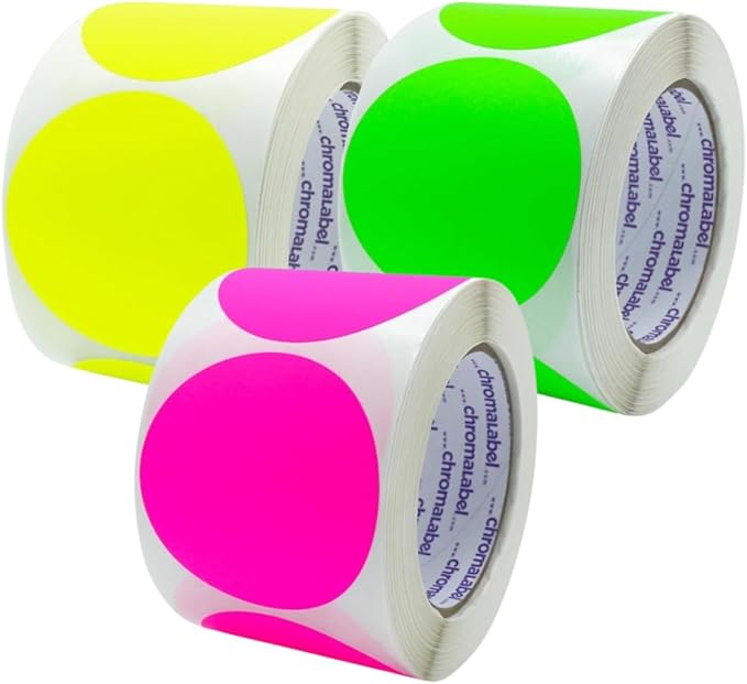 About our 3" Removable Color Code Fluorescent Green, Fluorescent Yellow, and Fluorescent Pink Dot Kit, 3 Rolls, 500/Roll