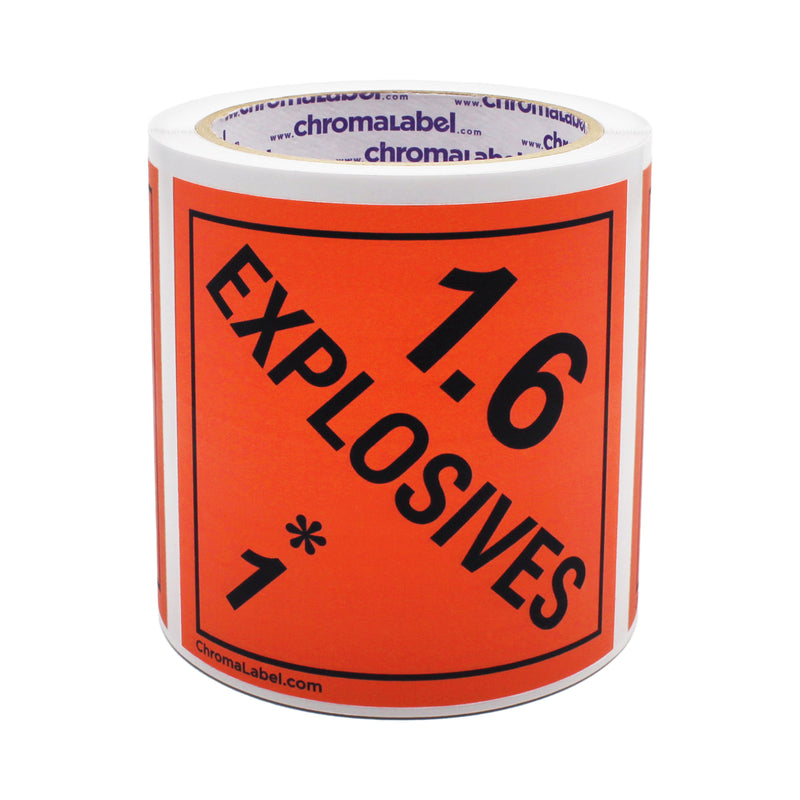4" x 4" Permanent Durable Square D.O.T. Hazard Labels, Hazard Class 1.6 Explosives Label, 100/Roll