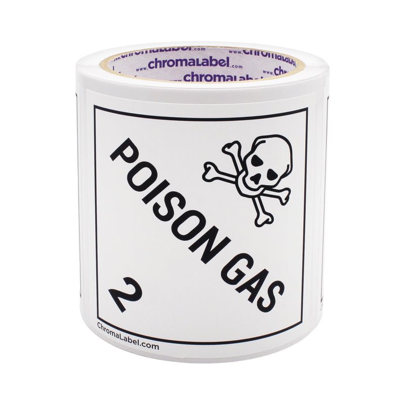4" x 4" Permanent Durable Square D.O.T. Hazard Labels, Hazard Class 2 Poison Gas Label, 100/Roll