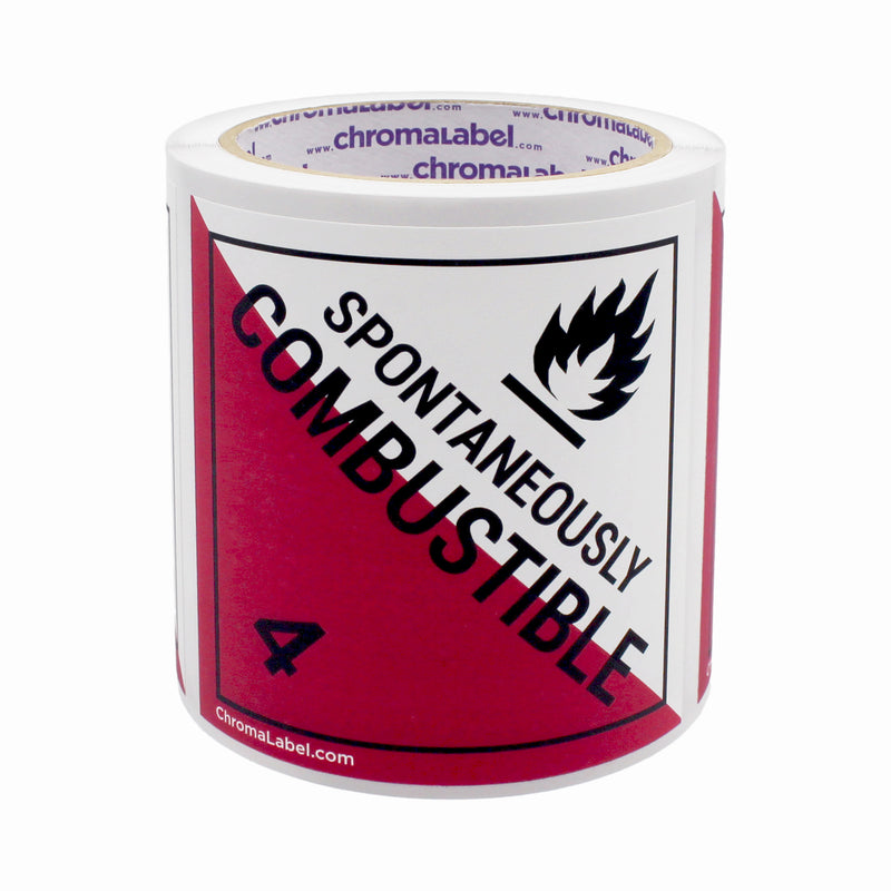 4" x 4" Permanent Durable Square D.O.T. Hazard Labels, Hazard Class 4 Spontaneously Combustible Label, 100/Roll