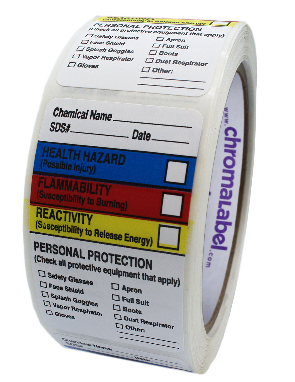 With plenty of room to write and obvious check boxes to mark, these labels are easier to populate than their HMIG & HMIS counter parts. A brief phrase defines each color, and there are 10 check boxes of commonly used personal protection equipment. This all helps foolproof the chemical safety identification process, especially for those technicians who haven't had their coffee yet.
