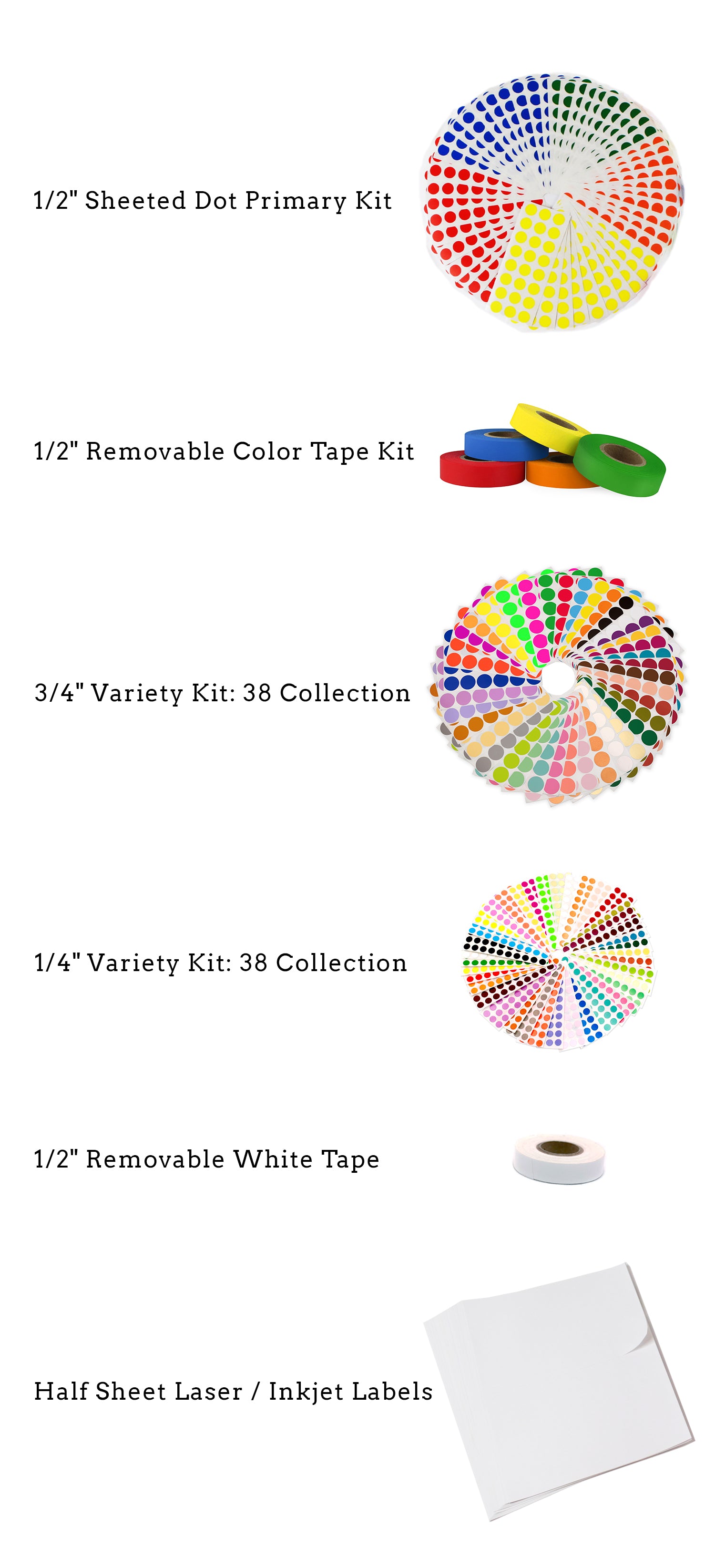 A perfect pack of ChromaLabel must-haves featuring the popular Removable Color-Code Tape and 3 different packs of our Color-Code Labels. Even your most complex organizing tasks are made easier with the 38 Collection packs in 3/4" and 1/4" sizes, and our most popular 1/2" Primary Collection Labels.
