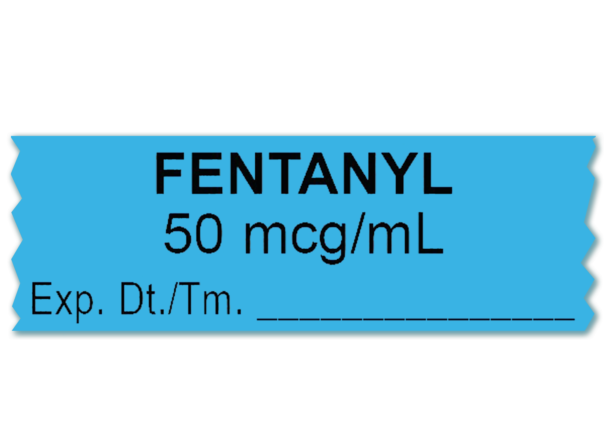 About our Fentanyl Labeling Tape for Anesthesia: 50 mcg/mL Exp Date Time - Blue - 1/2" x 500"