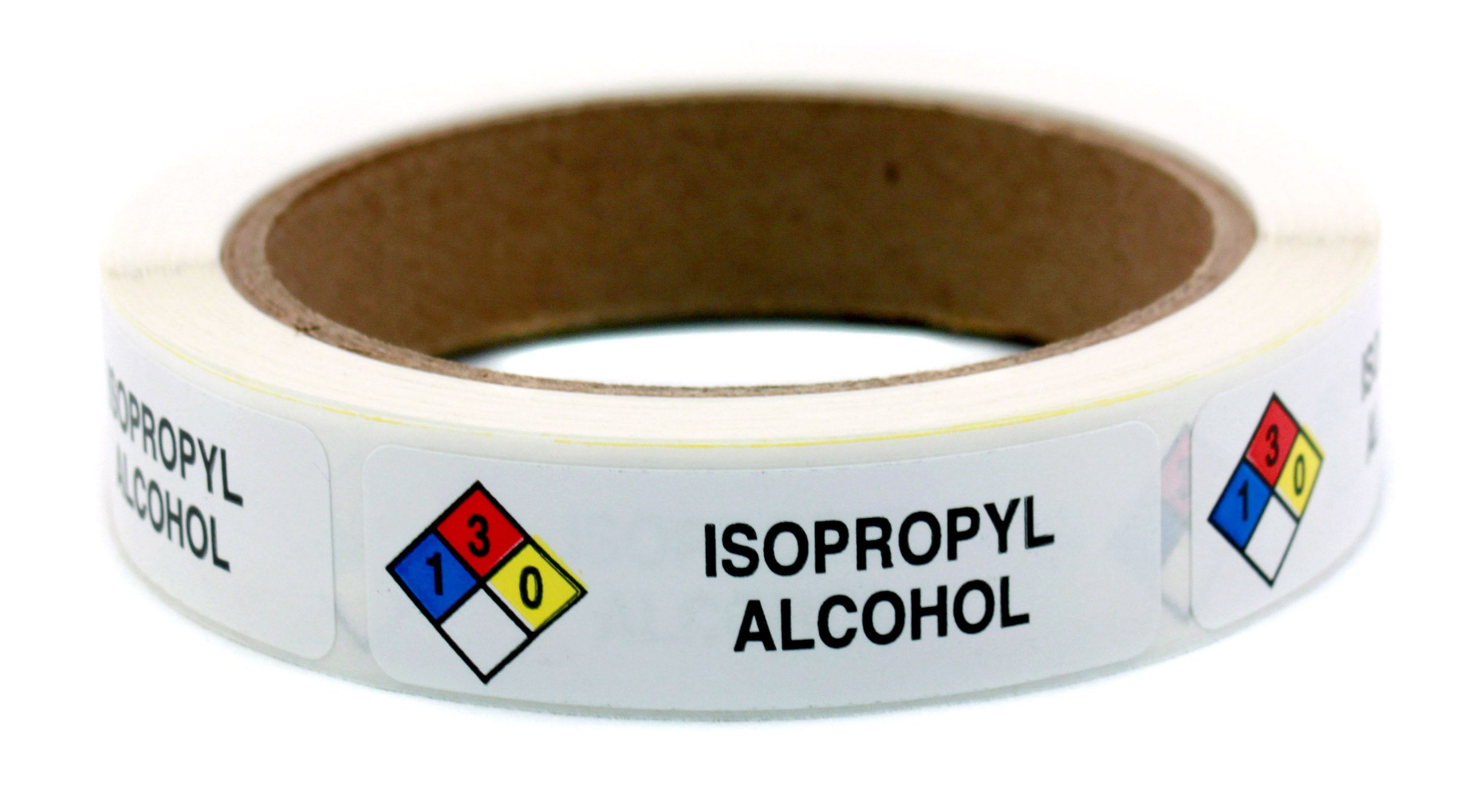 "Isopropyl Alcohol" HMIG Safety Labels, 0.75" x 2.5", 250/ROLL