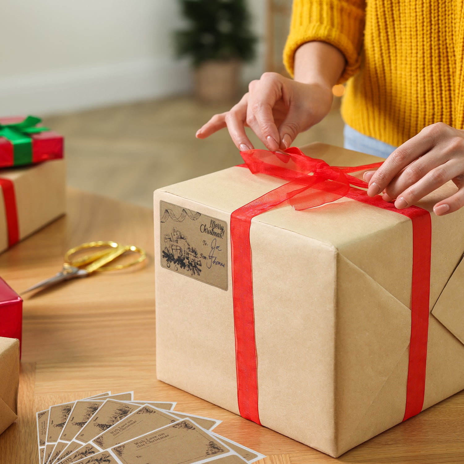 These Kraft Christmas Holiday labels are perfect to finish your artistically wrapped gifts-- or UNWRAPPED gifts. These Classic Kraft To/From labels will give a sharp finish to your holiday cards, wrapped parcels, gift baskets and more!