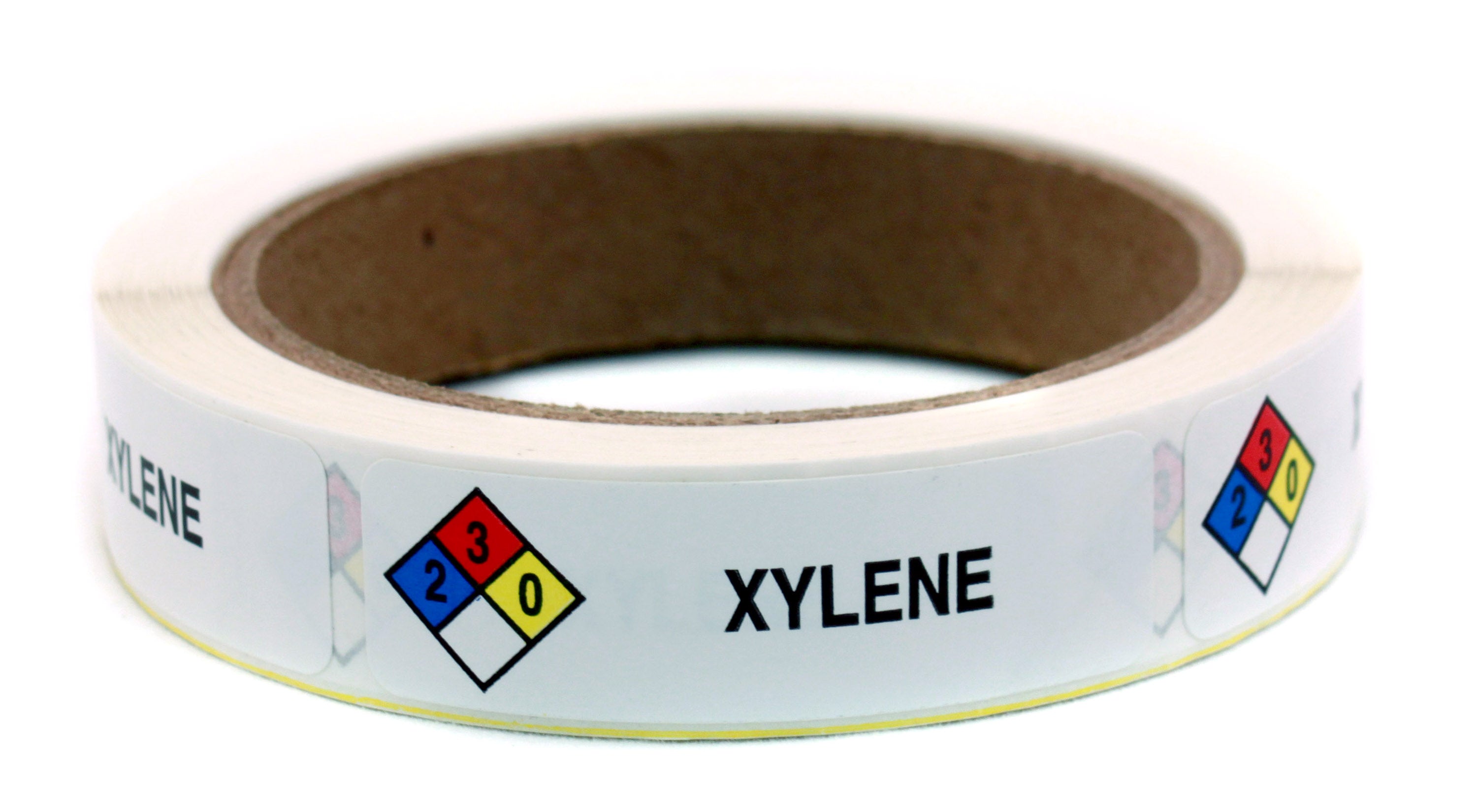 "Xylene" HMIG Safety Labels, 0.75" x 2.5", 250/ROLL